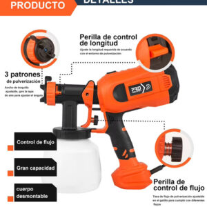 - Fácil montaje y limpieza, incluso si es tu primera pistola de pintar eléctrica